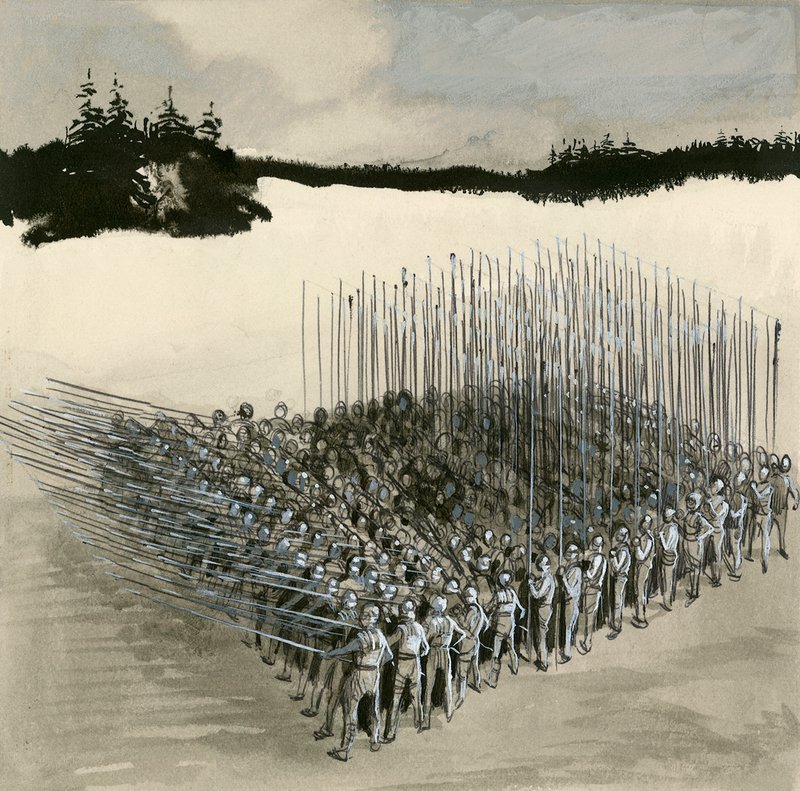 Een falanx van oude Griekse soldaten(A phalanx of ancient Greek soldiers)English School |