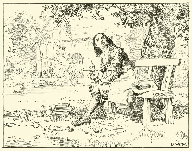 Newton en de Appel(Newton and the Apple (ink on paper))English School |
