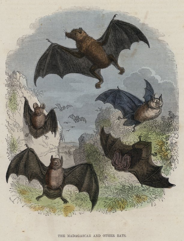 De Madagaskar en andere vleermuizen(The Madagascar and Other Bats (coloured engraving))English School |