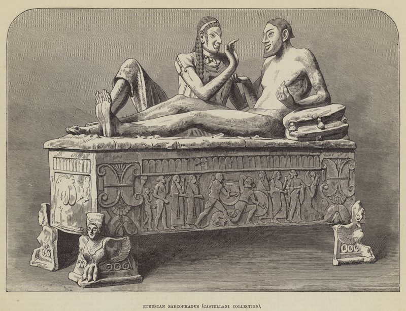 Etruskische sarcofaag, Castellani-collectie(Etruscan Sarcophagus, Castellani Collection (engraving))English School |