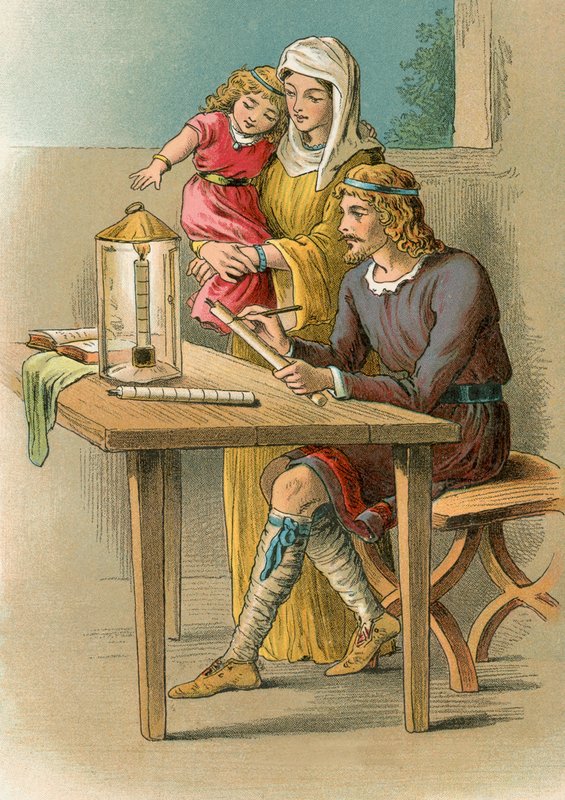 Alfred maakt zijn tijdmeter(Alfred making his timepiece)English School |