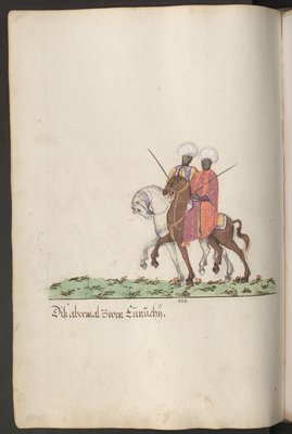 Turkse huwelijksceremonie: muzikanten met trompet en trommel Turkse huwelijksceremonie: muzikanten met percussie-instrumenten te paard Het hof van de sultan: twee schildknapen van de sultan te paard Burghers van Constantinopel te paard Hof van de sultan Het hof van een pasja en sultan: twee staatsambtenaren te paard Hovelingen te paard Personeel van de Perzische ambassade: Perzische lakeien te paard Het hof van een pasja en sultan: twee kamerheren te paard, één met een valk Turkse huwelijksceremonie: twee hooggeplaatste Turkse vrouwen die de bruid vergezellen Het hof van een pasja en sultan: drie schildknapen te paard, twee met valken Soldaten uit verschillende landen en culturen: Twee Turkse boogschutters te paard tijdens schietoefeningen Het hof van een pasja: twee valkeniers te paard Het hof van de sultan Personeel van de Perzische ambassade: drie hooggeplaatste Perzen te paard met een metgezel Het hof van de sultan Diverse Turken te paard: twee ruiters met tulbanden Het hof van een pasja en sultan: vier Turkse boogschutters uit de lijfwacht van de sultan De serail van de sultana: eunuch met twee bedienden die paardendekens dragen. Twee zwaardvechters, illustratie uit een kopie van Nihayat al-Sul wa al-Umniya fi Taallum Amal al-Furusiyya, of Een compendium van militaire kunsten, uit Egypte, 1366 Twee Turkse grenssoldaten met hoofdversiering, strijdbijlen en sabels. Sir Percivals paard wordt gedood, uit de Queste del Saint Graal, ca. 1380-85 Walachijse en Moldavische edelen, eind zestiende eeuw Het hof van een pasja en sultan: krijgers met bijlen en bogen Burgers van Constantinopel Boven: Bruidsstoet met de bruid verborgen door een gordijn Het toernooiboek van René d Moskovische kooplieden in Constantinopel ...