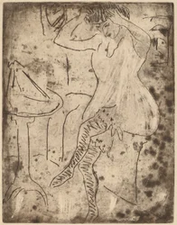Dodo haar haar schikkend, 1909(Dodo Arranging Her Hair, 1909. )Ernst Ludwig Kirchner |