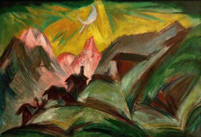 Stafelalp in maanlicht, alpenhutten bij Davos waar Kirchner zich terugtrok (schilderij op doek)(Stafelalp in moonlight, alpine huts near Davos to which Kirchner retreated (painting on canvas))Ernst Ludwig Kirchner |