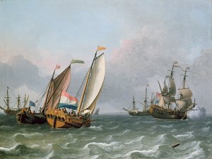 Uitzicht op de haven van Boulogne vanaf de zee, 1843(View of the port of Boulogne from the sea, 1843 )Eugene Isabey |