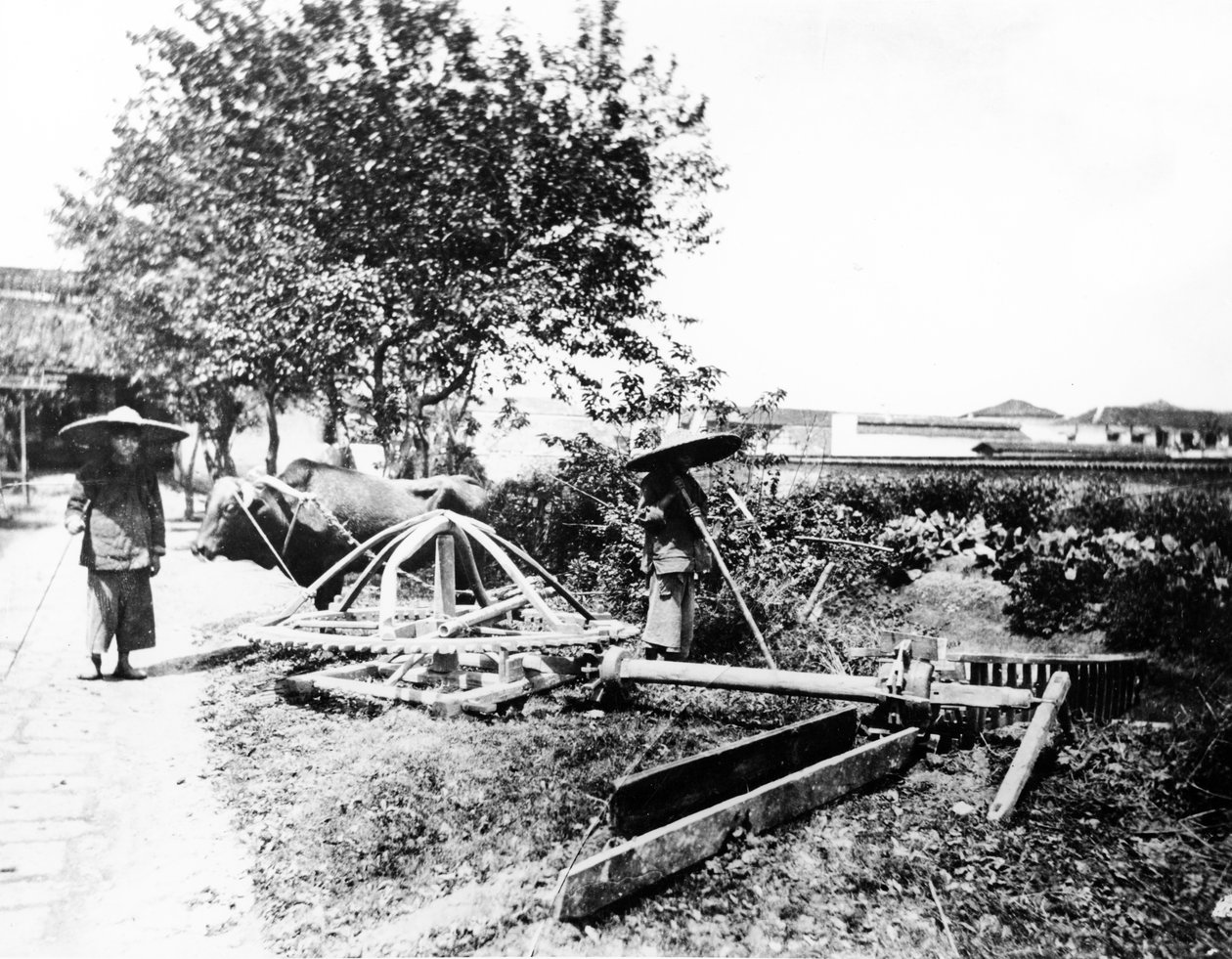 Met ossen aangedreven irrigatie, China, ca. 1870-80(Ox-Driven Irrigation, China, c.1870-80 )European Photographer |