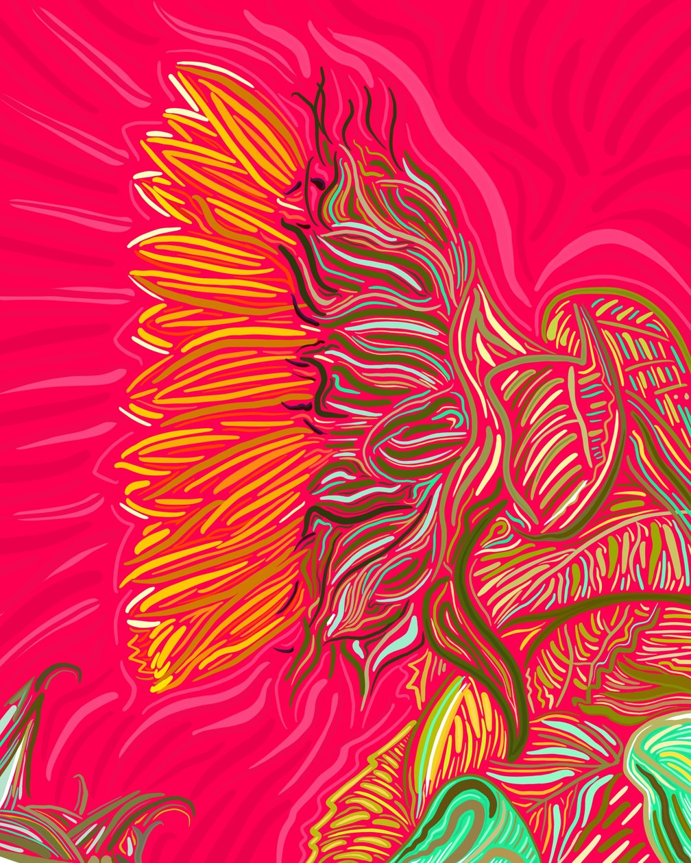 Enkele zonnebloem, ca 2020-24 (digitale kunst)(Single Sunflower, c.2020-24 (digital art))Evan Sklar |