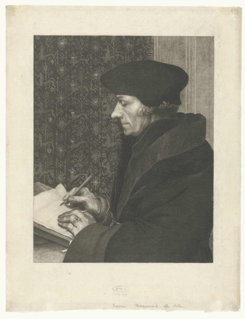 Portret van Desiderius Erasmus(Portrait of Desiderius Erasmus)Felix Bracquemond(print maker),Hans Holbein (II)(after painting by) |