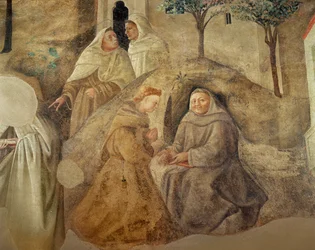 De Hervorming van de Karmelietenregel (detail)(The Reform of the Carmelite Rule, detail of four Carmelite friars, c.1422 fresco detail from 94764)Fra Filippo Lippi |