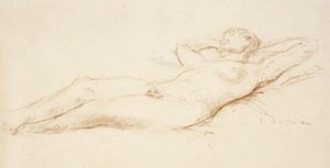 black chalk with touches of red chalk, heightened with white chalk on gray paper