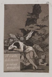 De slaap van de rede brengt monsters voort(Fornuftens søvn fostrer uhyrer)Francisco de Goya |