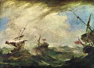 Boten op een Stormachtige Zee(Boats on a Stormy Sea (wc over graphite on wove paper))Francois Louis Thomas Francia |