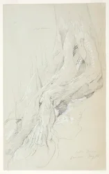 Tekening, Wortels van een katoenboom op een helling, Jamaica, mei 1865(Drawing, Cotton Tree Roots Growing on a Slope, Jamaica, May 1865)Frederic Edwin Church |