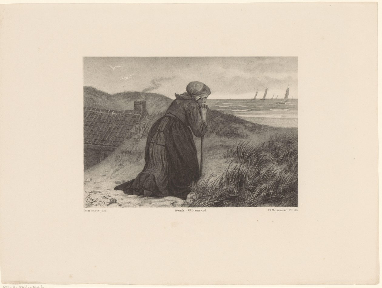 Oude vrouw leunend op stok(Old Woman Leaning on a Stick)Frederik Hendrik Weissenbruch(print maker),Henri Bource(after painting by),Jan Dam Steuerwald(printer) |