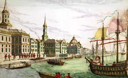 De landing van Engelse troepen in New York, september 1776, uitgegeven door J. Chereau, Parijs(The Landing of English Troops at New York, September 1776, pub. by J. Chereau, Paris )French School |