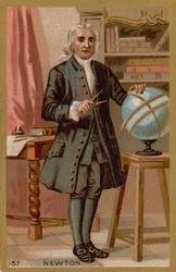 Portret van Isaac Newton (1642-1727). Chromolithografie van het einde van de 19e eeuw.(Portrait of Isaac Newton (1642-1727). Chromolithography of the late 19th century.)French School |