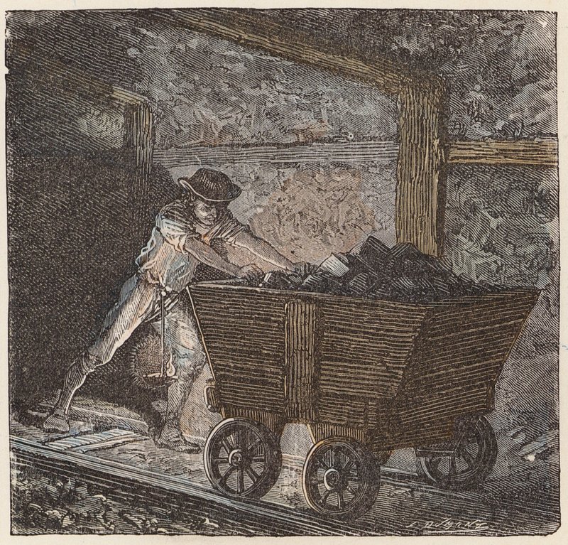 Steenkoolmijnbouw(Coal mining (coloured engraving))French School |