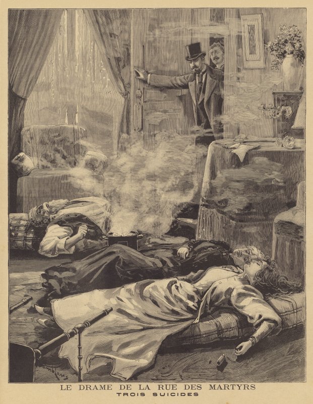 Drievoudige zelfmoord in de Rue des Martyrs(Triple suicide in the Rue des Martyrs )French School |
