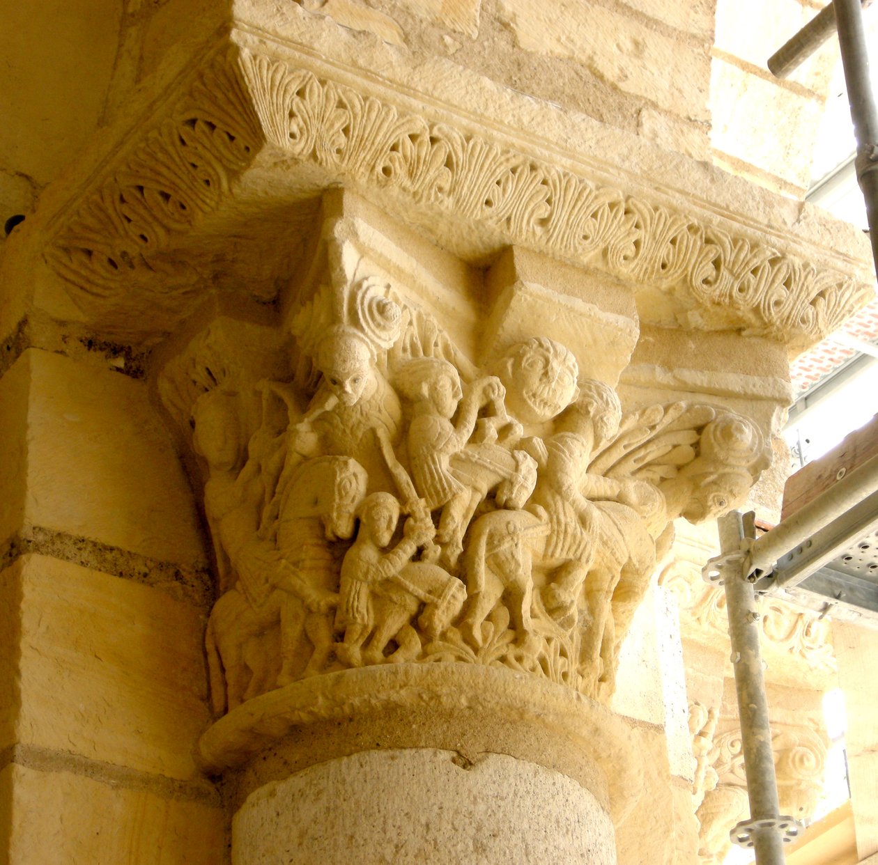 Kapiteel met afbeelding van drie ruiters(Capital depicting three horsemen )French School |