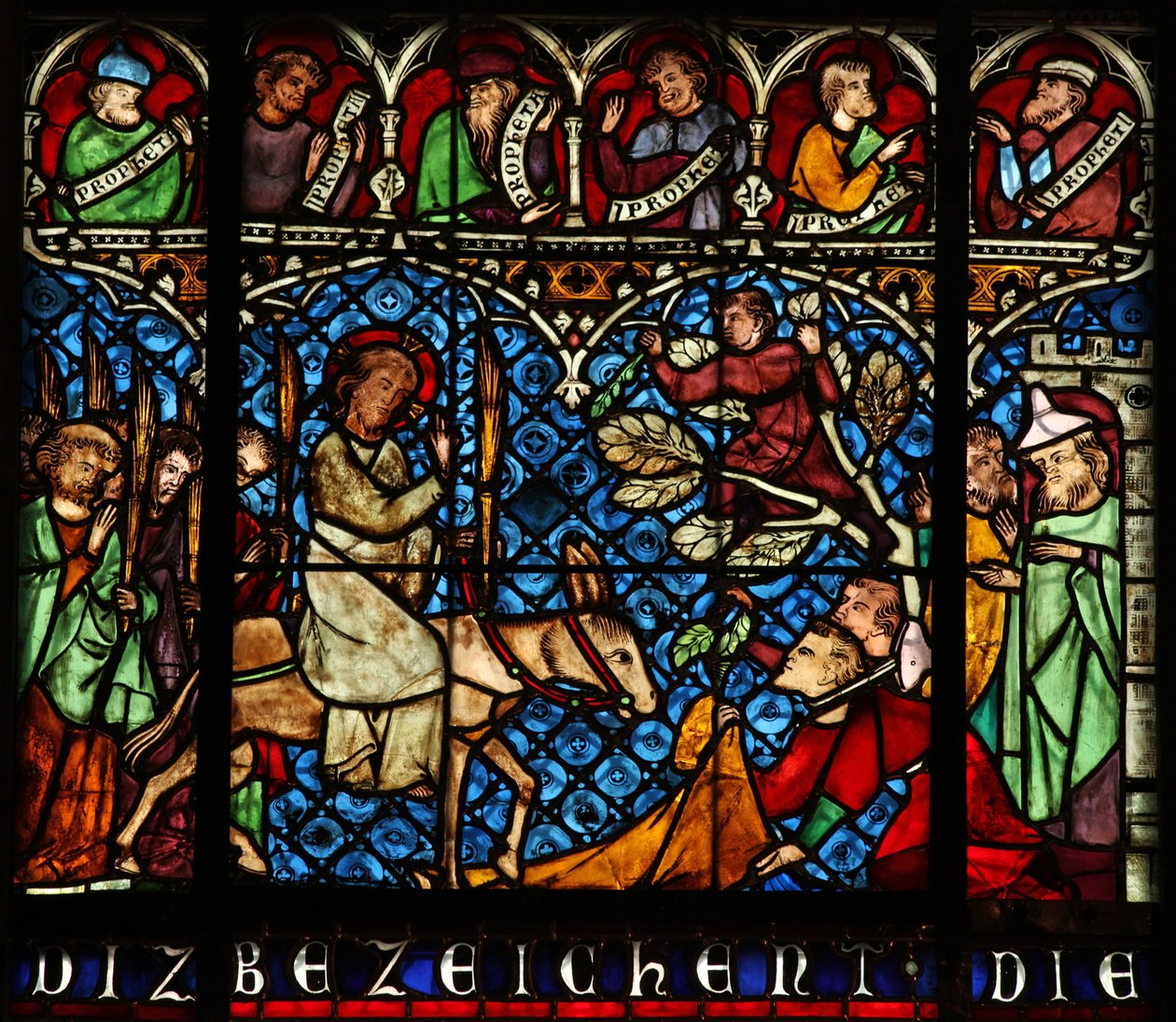 Raam w12 met de Intocht in Jeruzalem(Window w12 depicting the Entry to Jerusalem )French School |
