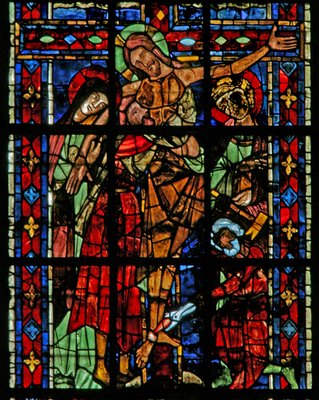 Ramen w200 met de Kruisiging(Window w200 depicting the Crucifixion )French School |