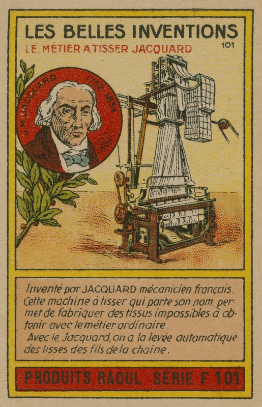 Mooie uitvindingen kaart, Jacquard weefgetouw(Beautiful inventions card, Jacquard loom )French School |