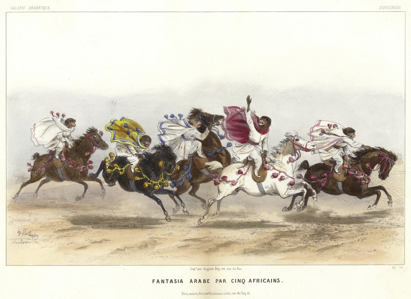 Vijf verklede apen te paard(Five costumed monkeys on horseback )French School |