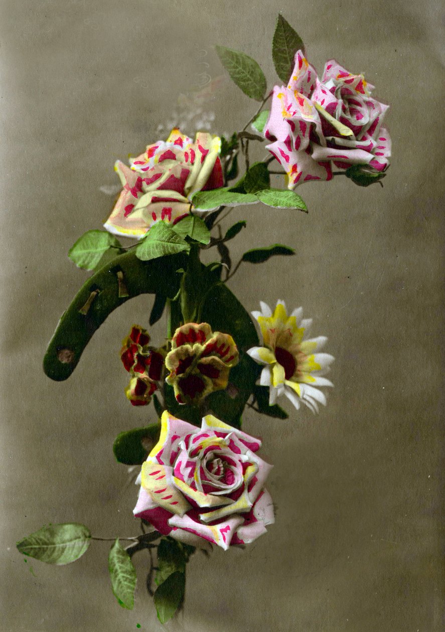 Hoefijzer en bloemen ca. 1898(Horseshoe and flowers c.1898 (hand-tinted photo))French School |