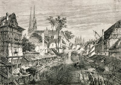 Chartres, Frankrijk, in de 19e eeuw, uit 'French Pictures' door Rev. Samuel G. Green, gepubliceerd 1878(Chartres, France, in the 19th century, from 'French Pictures' by Rev. Samuel G. Green, published 1878 )French School |