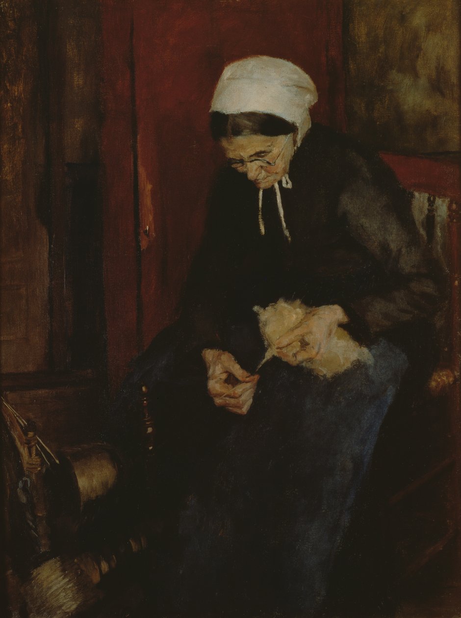 Oud vrouwtje spint wol(Old Lady Spinning Wool)Fritz Mackensen |