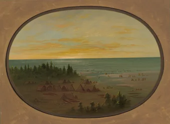 Nayas dorp - Indianen baden, 1855-1869(Nayas Village - Indians Bathing, 18551869. )George Catlin |