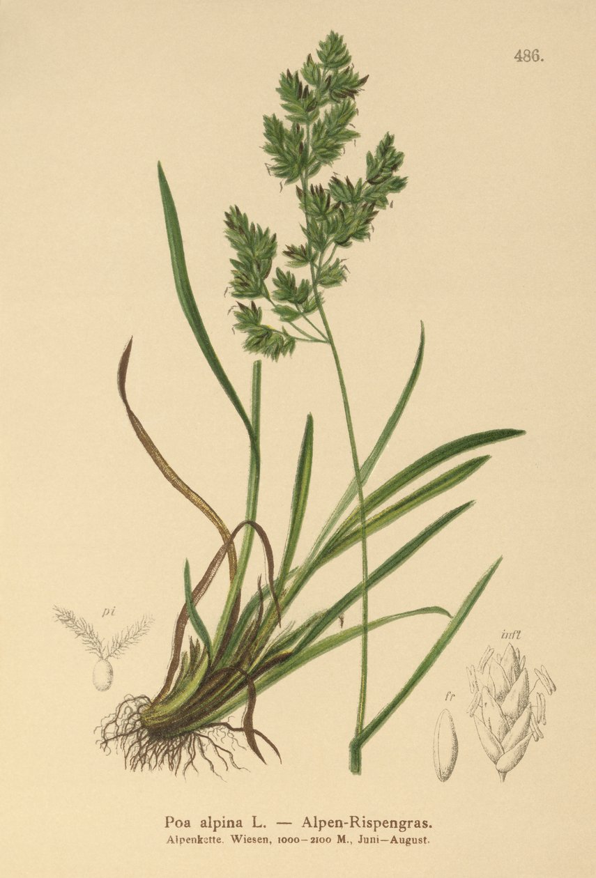 Alpen Beemdgras(Alpine Bluegrass (Poa alpina) )German School |