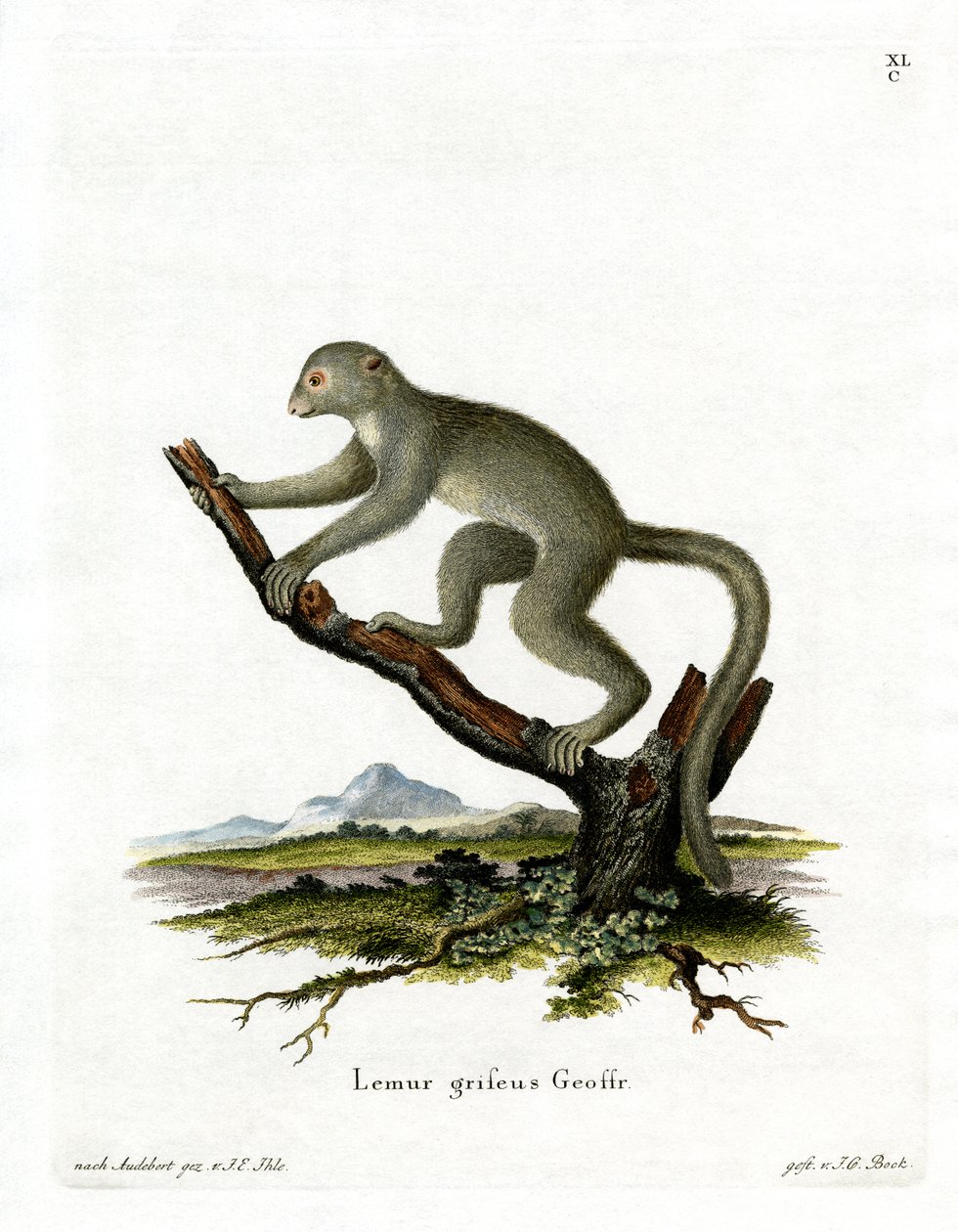 Bamboe Lemur(Bamboo Lemur (coloured engraving))German School |