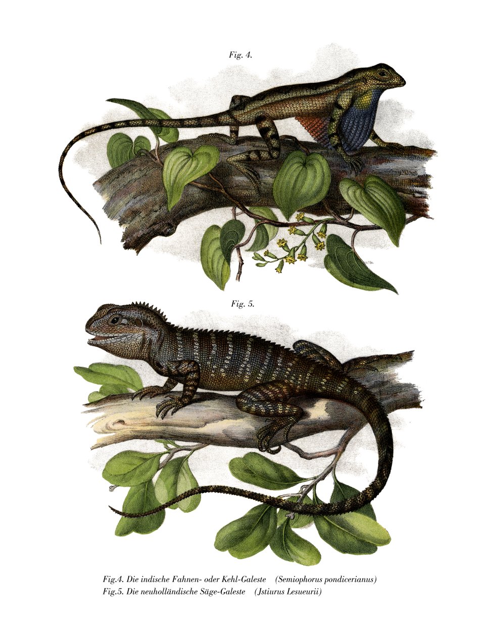 Waaiersalamander(Fan-throated Lizard (colour litho))German School |