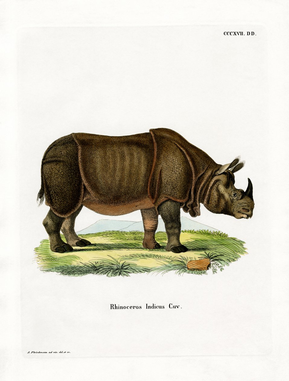 Indische neushoorn(Indian Rhinoceros (coloured engraving))German School |