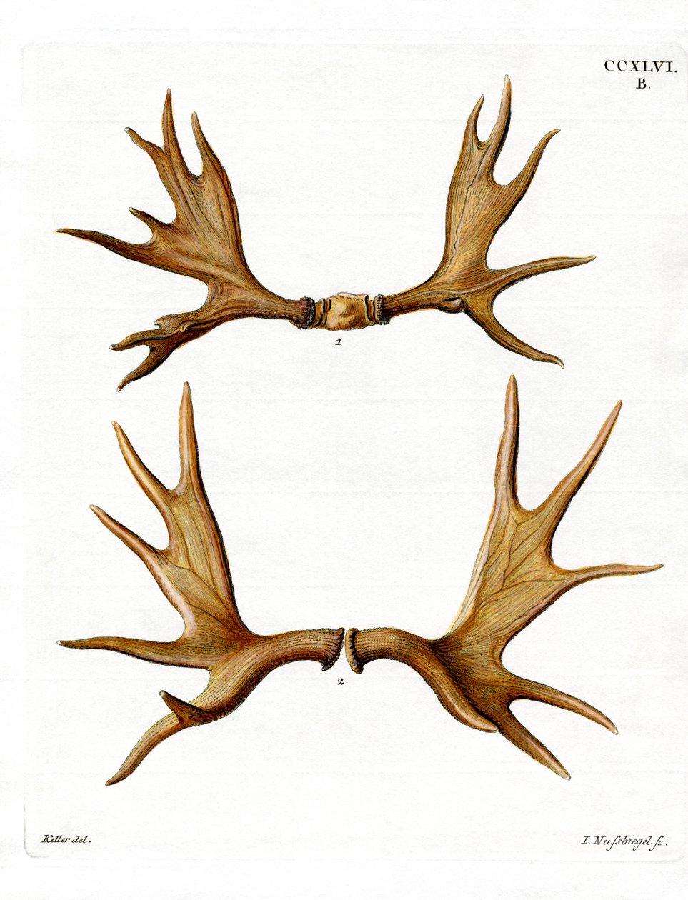 Elandgeweien(Moose Antlers (coloured engraving))German School |