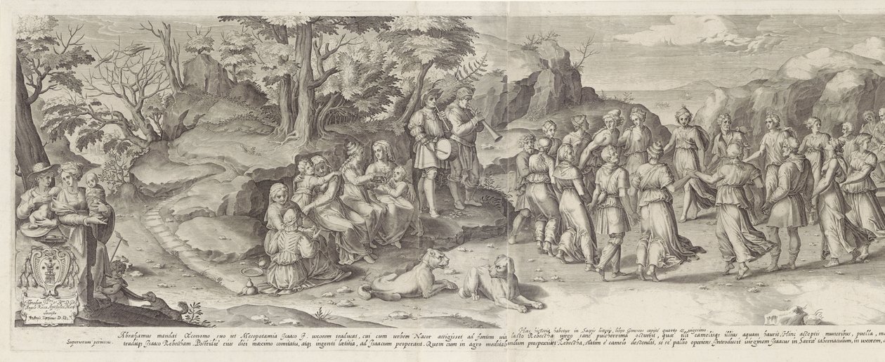 Huwelijk van Isaak en Rebekka(Marriage of Isaac and Rebekah)Gijsbert Van Veen(print maker),Baldassare Peruzzi(after design by),Jo. Turpinus(publisher) |