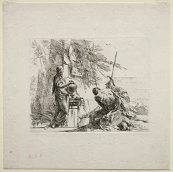 Verschillende Caprices: De Vrouw Staande met Handen op een Vaas, 1785(Various Caprices: The Woman Standing with Hands on a Vase, 1785. )Giovanni-Battista Tiepolo |