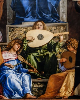 Maria met kind en heiligen (olieverf op hout)(Virgin and Child and saints (oil on wood))Giovanni Bellini |