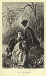 De Twee Koningskinderen, 1901 Decameron - Dag drie, kort verhaal 1 - De kloostertuinman Decameron - Dag 5, kort verhaal 4 - De nachtegaal Tircis & Amarante - Fabels van La Fontaine Illustratie voor Tennysons gedicht, De Prinses De Twaalf Jagers, 1901 Zuchtende minnaar knielt aan de voeten van zijn mooie verloving in een interieur bij kaarslicht - meisje in romantische jurk en kapsel - gravure (ets 1845) door Tony Johannot (Antoine Johannot dit De gebroken gelofte Gravure ter illustratie van de roman Paar Geliefden in een Landschap Sacripant (Sacripante) uit het zadel geworpen in aanwezigheid van Angelica - gravure uit 1851 van Heloise en Astrolabius, illustratie uit Adam Bede, die de overhand heeft gekregen op Arthur Donnithorne in een gevecht, is geschokt om zijn rivaal bewusteloos te zien liggen. Adam Bede door George Eliot, voor het eerst gepubliceerd in 1859. Illustratie door William Small (1843-1929) uit een edit De Verloofde van de Koning van Garbe: De Ridder Theatrale voorstelling: Assepoester en de Prins Charmant uitgevoerd door Mme Theo en Melle Vanghel voor het stuk Illustratie voor Lorna Doone L Duo van de derde akte met zangeres Marie van Zandt van de opera De Droom van de Dichter Margaret en de Rover, 1902 Ze zakt op haar knieën, neemt het dierbare hoofd in haar armen en kust het koude voorhoofd Koningin Sophie Dorothee van Zelle (1666-1726), vrouw van George I van Engeland en de jonge Philip Christophe van Koenigsmark, in een intiem moment. Gravure in Illustratie uit Koningin Margaret en de rover (litho) De getemde feeks (The Taming of the Shrew) - Illustratie in Baskische Kostuums - Le muet de la vallee d Illustratie voor Decameron - Dag 5, kort verhaal 8 - De hel van wrede minnaars