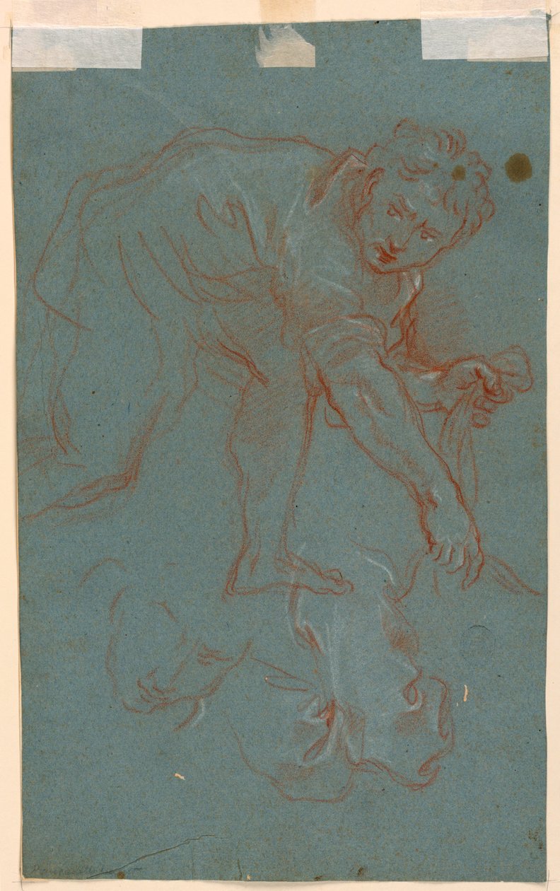Niet gedateerd · Red and white chalk on rough blue paper.
