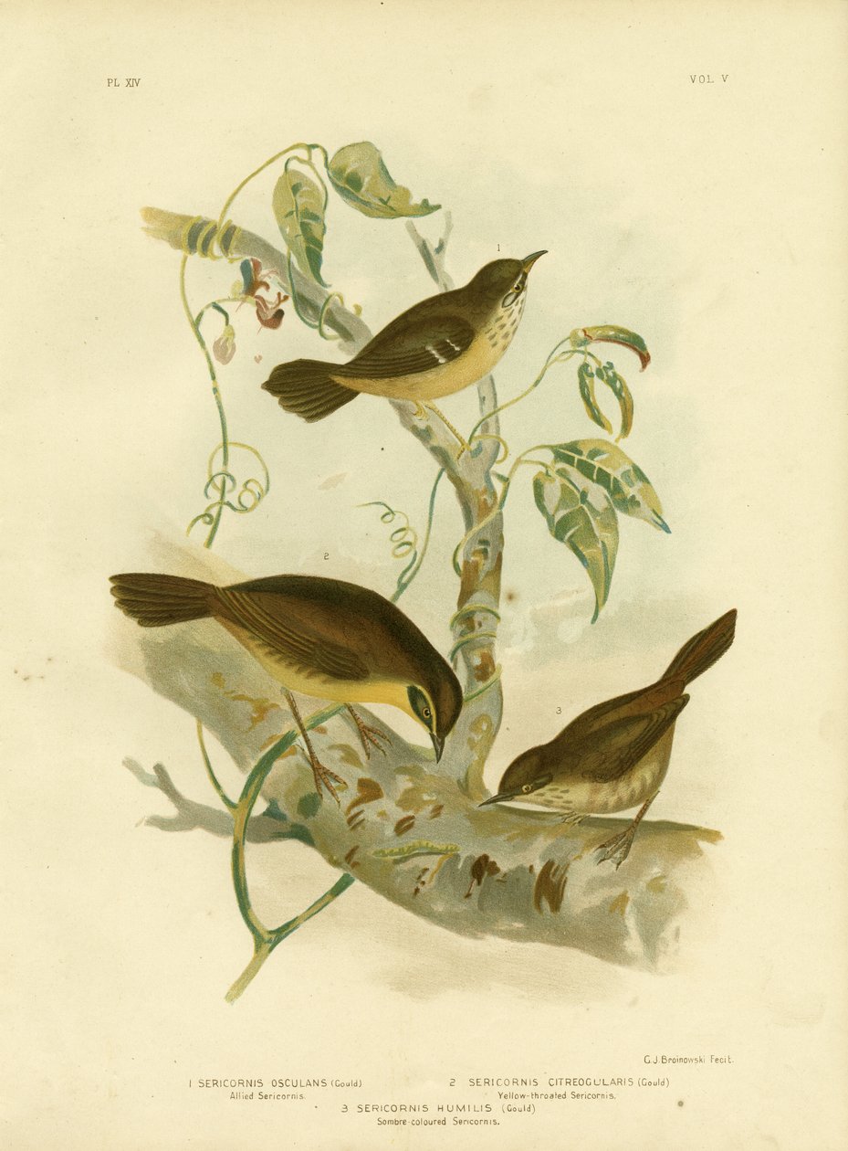 Allied Struikzanger of Witbrauw Struikzanger, 1891(Allied Scrubwren Or White-Browed Scrubwren, 1891 )Gracius Broinowski |