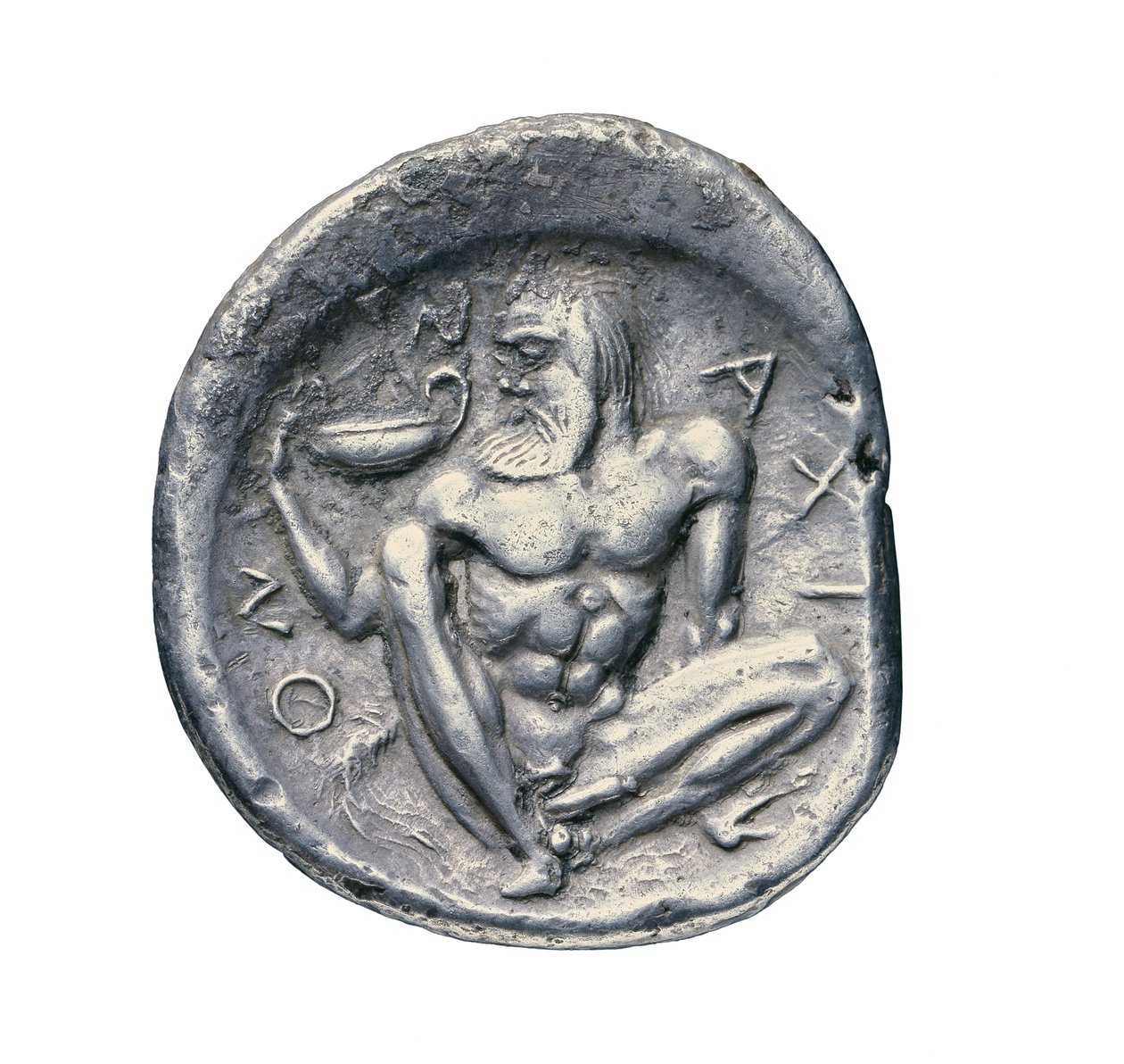 Oude Griekse zilveren munt uit Naxus, 460 v.Chr.(Ancient Greek silver coin from Naxus, 460 BC (silver))Greek |