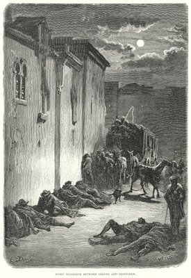 Nachtelijke vlijt tussen Gerona en Perpignan (gravure)(Night Diligence between Gerona and Perpignan (engraving))Gustave Dore |