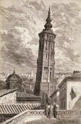 La Torre Nueva, Zaragoza in de 19e eeuw, 1878(La Torre Nueva, Zaragoza in the 19th century, 1878 (wood engraving))Gustave Dore |