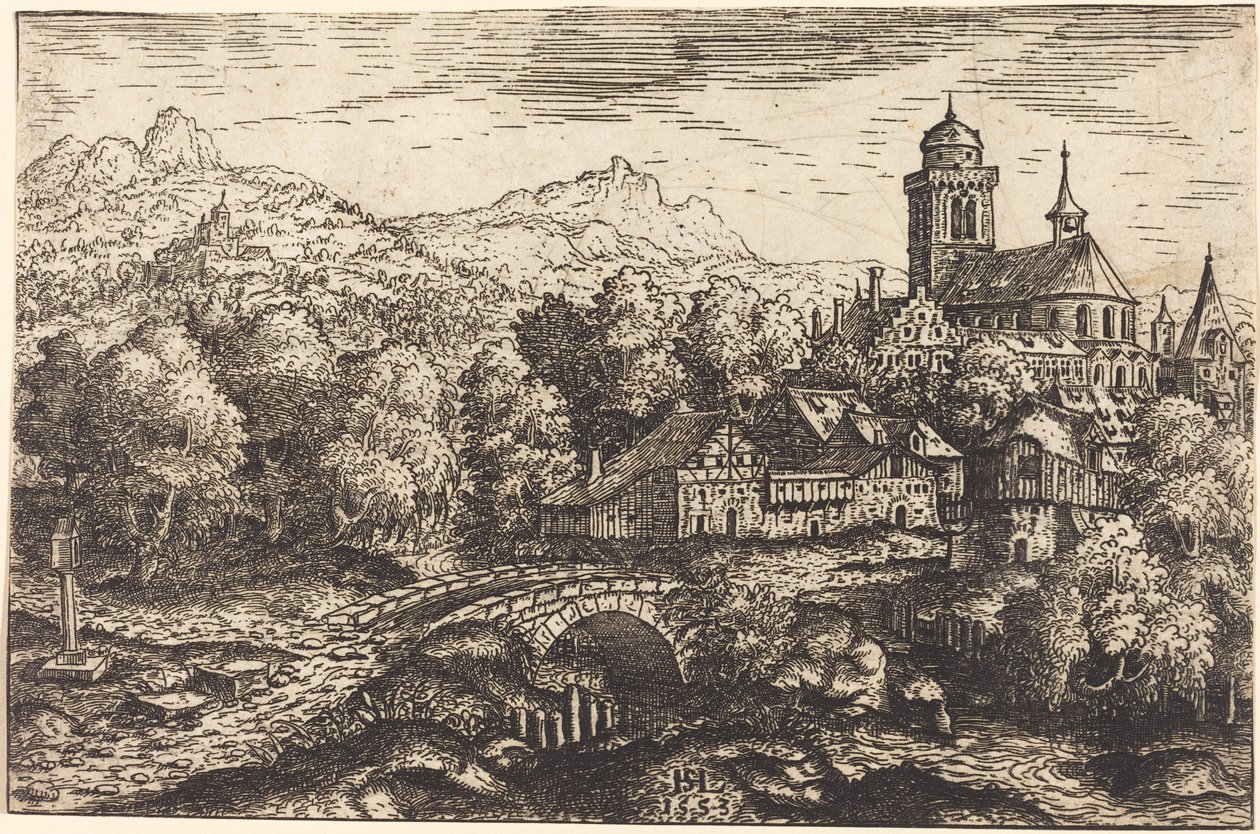 Bergachtig landschap met een dorp, 1553(Mountainous Landscape with a Village, 1553. )Hans Sebald Lautensack |