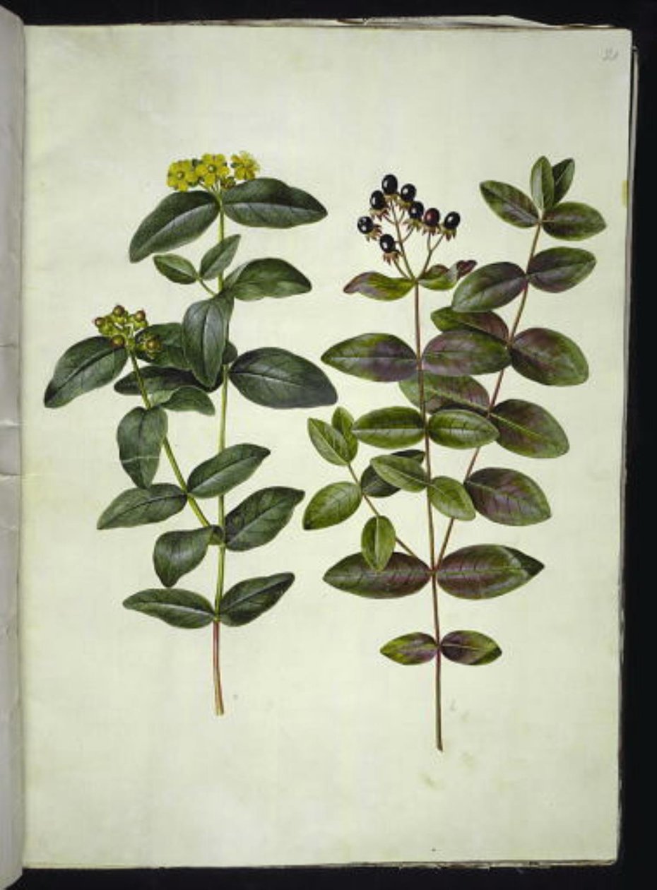 Hypericum androsaemum (bessenst. Janskruid)(Hypericum androsaemum (bær-perikon))Hans Simon Holtzbecker,Maria Sibylla Merian(earlier ascribed to) |