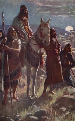 Nehemiahs middernachtelijke onderzoek, illustratie uit Pictures That Teach The Crown Series, 1920(Nehemiahs midnight survey, illustration from Pictures That Teach The Crown Series , 1920 )Harold Copping |