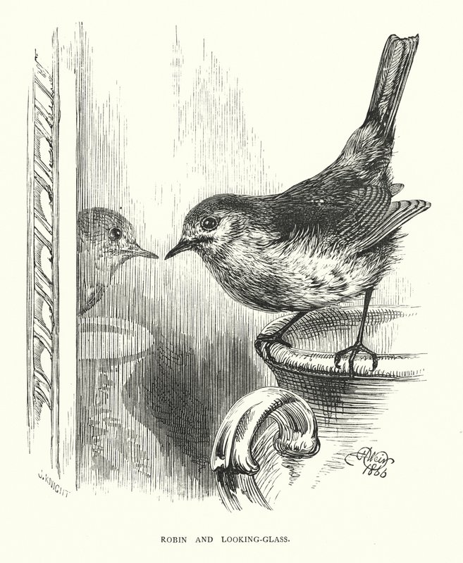 Robin en de Spiegel (gravure)(Robin and looking-glass (engraving))Harrison William Weir |