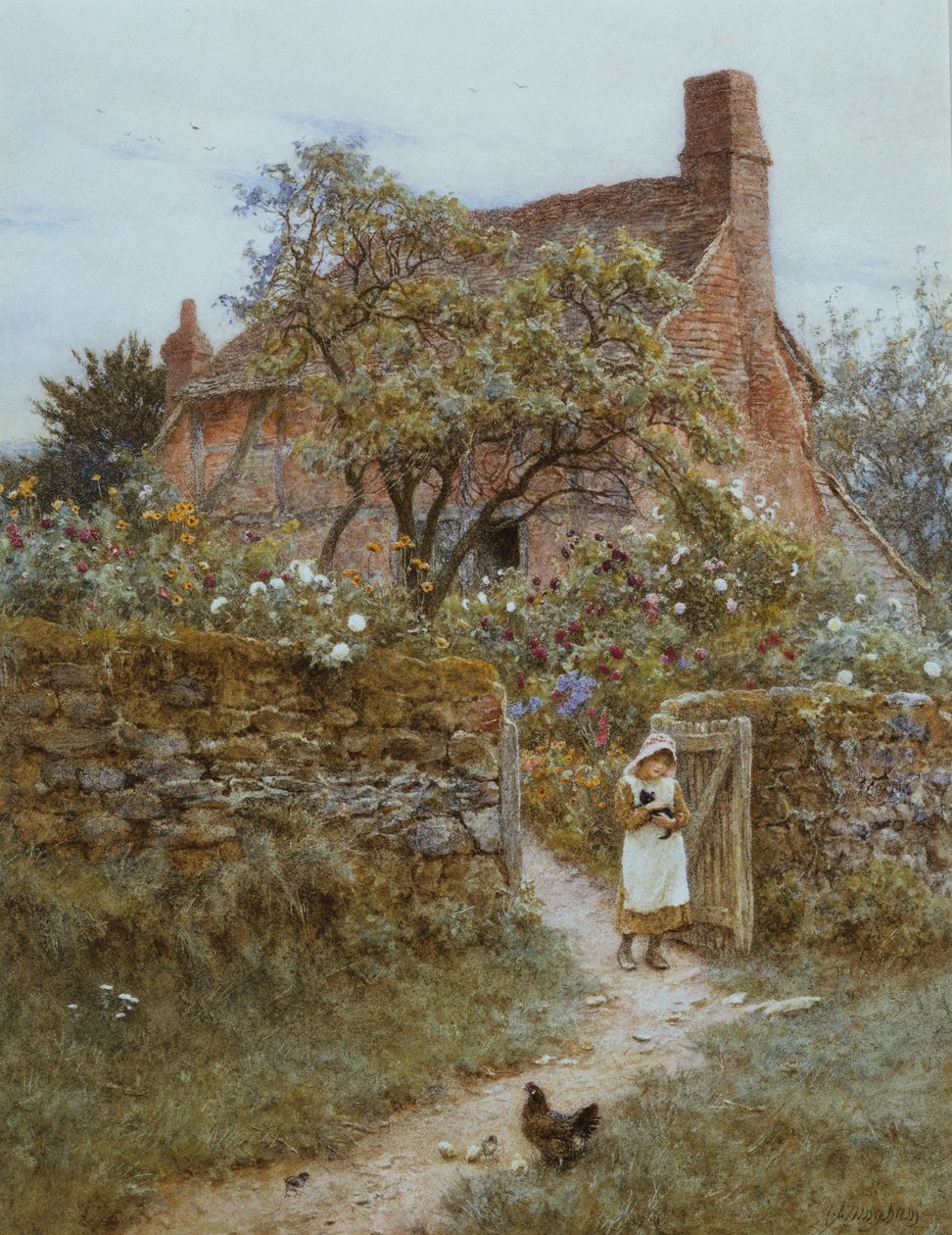 Het zwarte katje(The Black Kitten (watercolour with scratching out))Helen Allingham |
